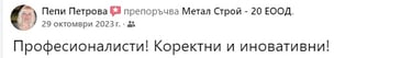 Благодаря за чудесната работа . Бързи, точни, коректни и внимателни към клиента и неговите желания.